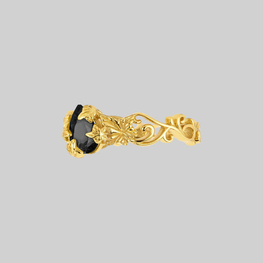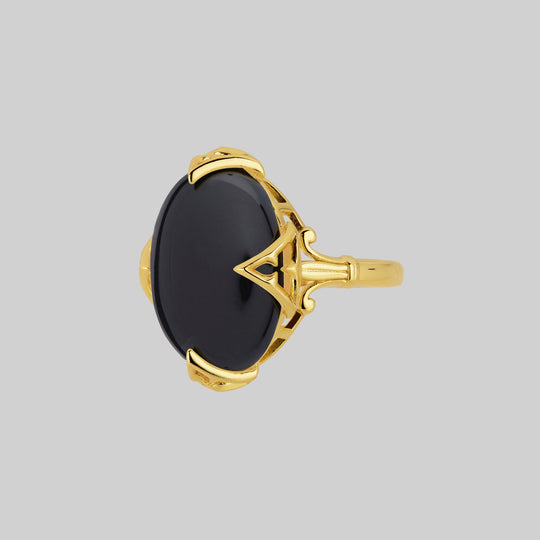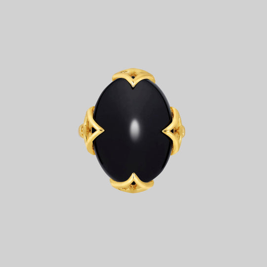 CIRCINUS. Gothic Black Onyx Ring - Gold