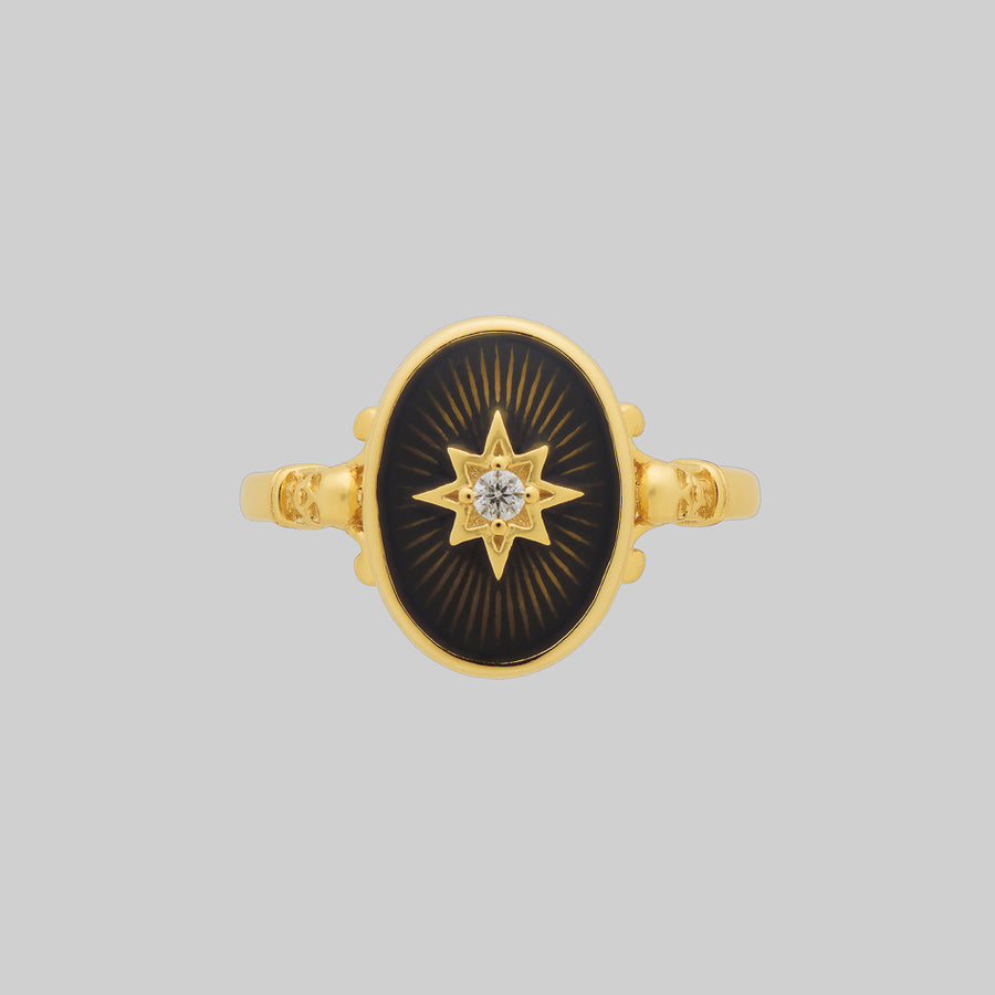 THE HEREAFTER. Black Enamel Oval Ring - Gold
