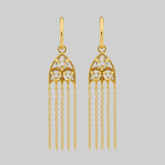 REVERENT. Gothic Window Glass Drop Earrings - Gold