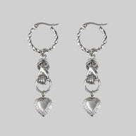 DEVOTION. Black Heart & Sword Hoop Earrings - Silver