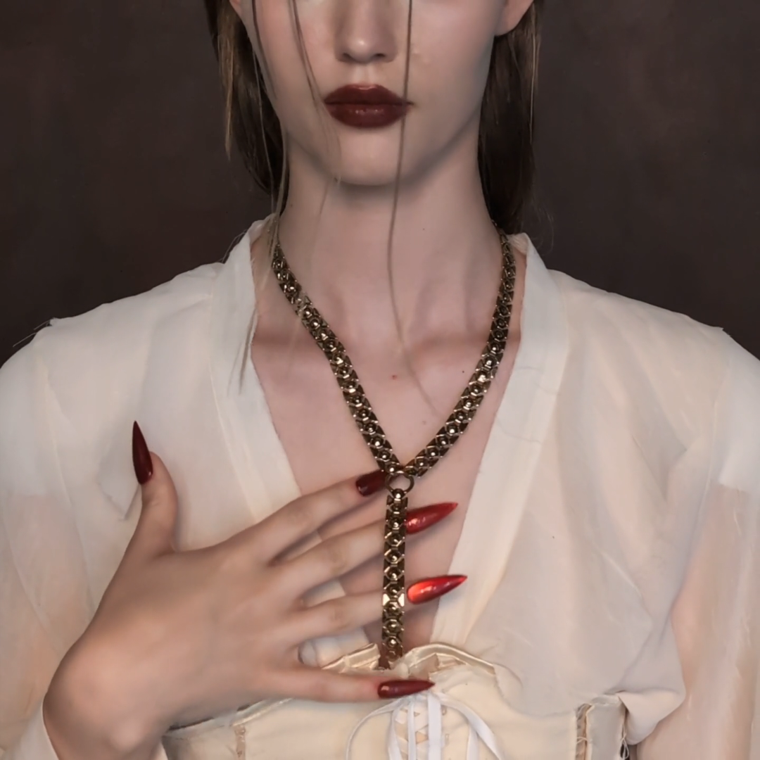 Perfect for layering, this smooth and textured necklace is comprised of a band of medieval crosses threaded into a lariat chain with an antique gold finish in a nod to royals of eras past.