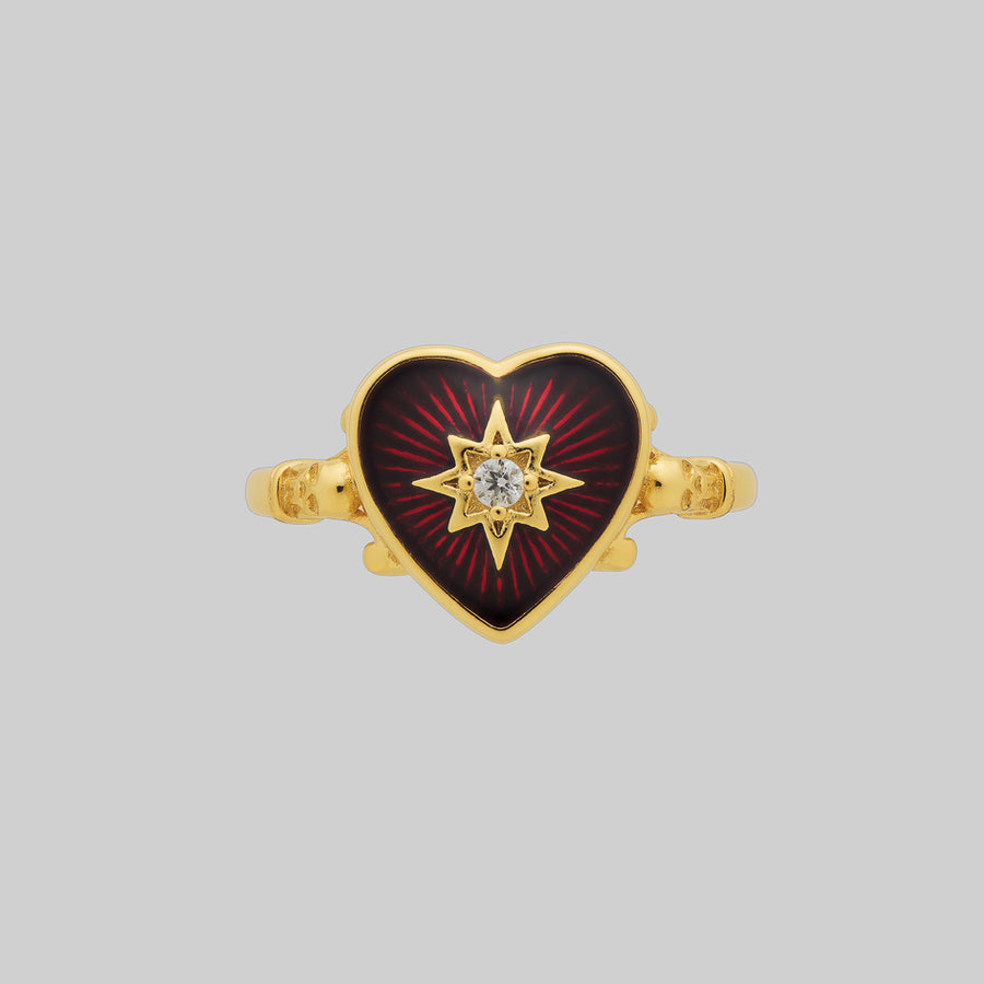 FOREVER YOURS. Red Enamel Heart Ring - Gold