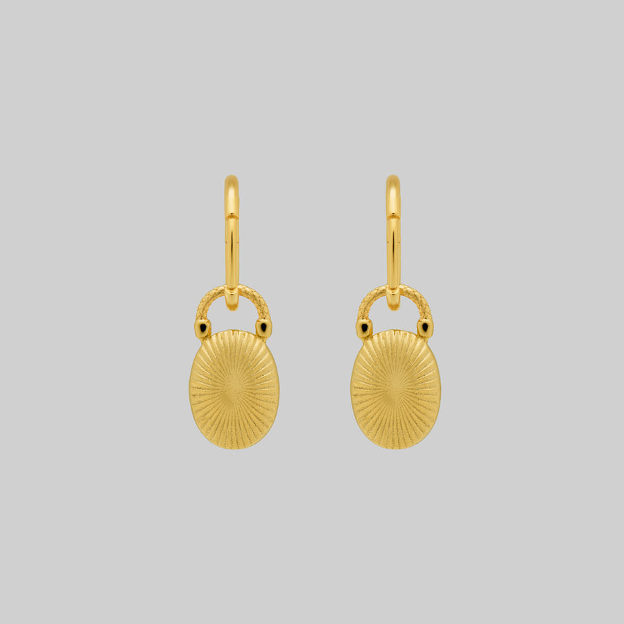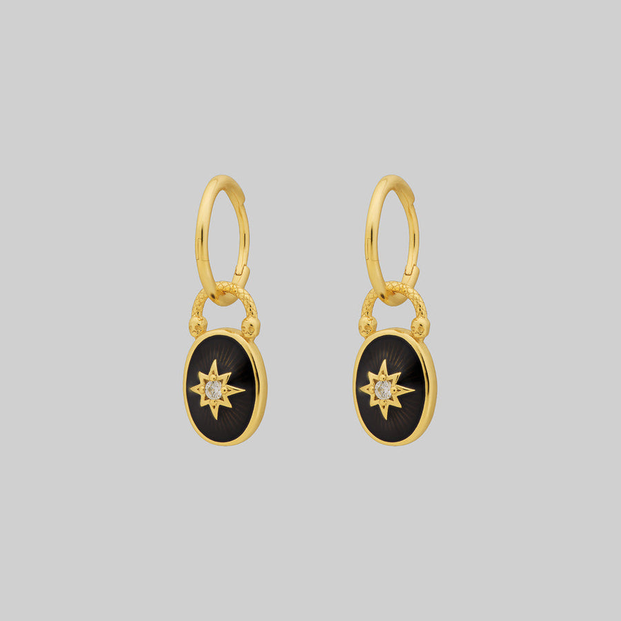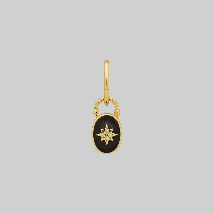 THE HEREAFTER. Black Enamel Oval Padlock Style Hoop Earrings - Gold